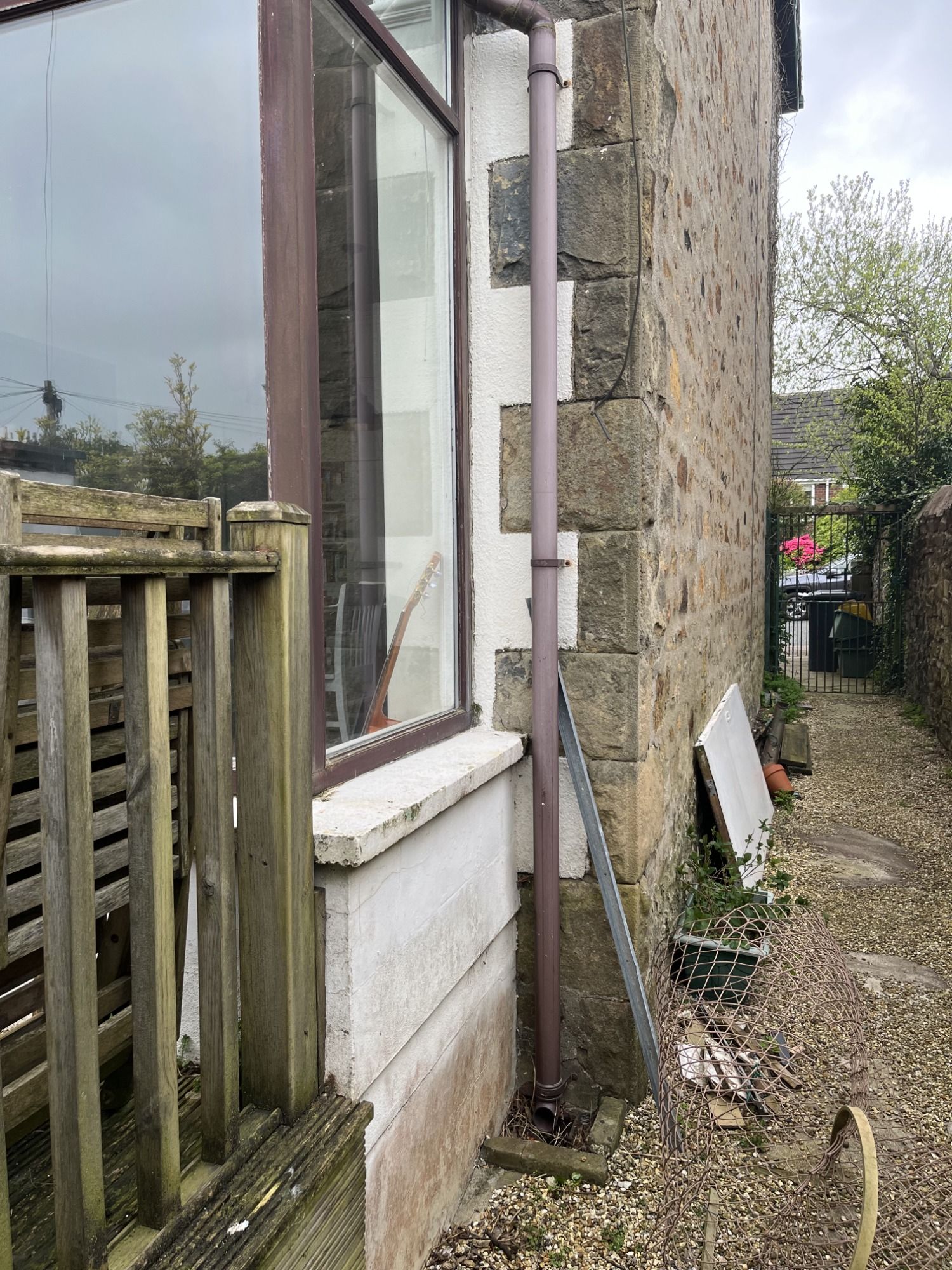 I uncovered a broken foul drain, when digging out, so this was repaired. The washing machine was plumbed under the kitchen floor and just ran down the wall into the drain. So that this didn't cause any damage to the building, I put a small piece of pipe on it, and ran it into the drain. Small things can make all the difference.