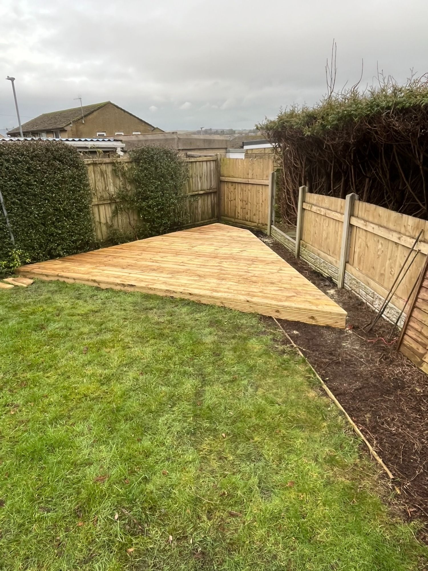 This was an add-on from another job. I had already removed the bushes to the side of the garden, which had exposed additional, useable area. They already had a small decked area, but wanted it etending, so that it was more usable.