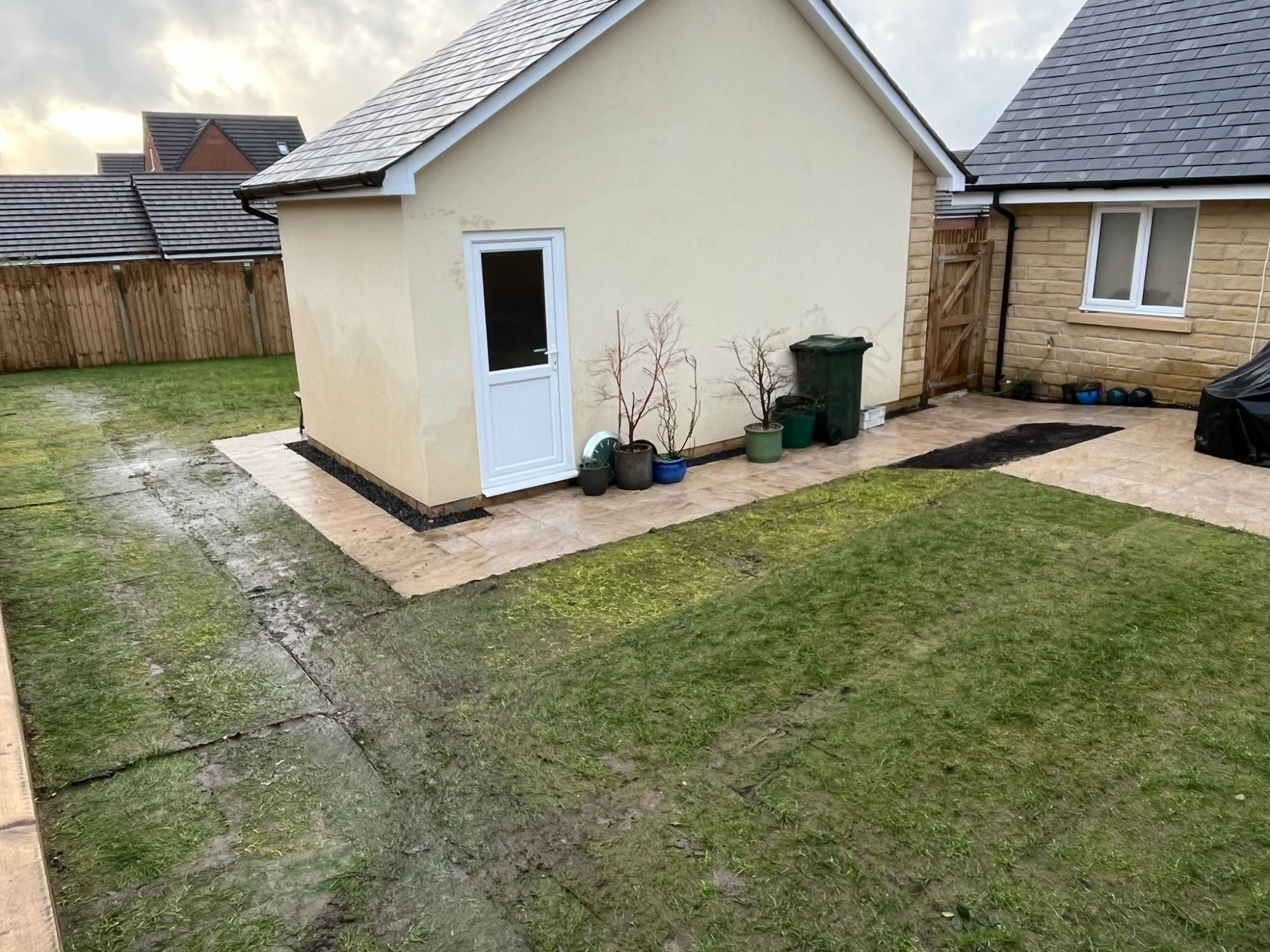 There was an old wooden shed, at the end of the kitchen extension, so that was removed and, as the patio looked so good, they asked for the paving to be carried on, into this area. It was to be covered by a new shed, but they were thinking, long-term, if this was removed, the base would be the same as the rest of the garden.