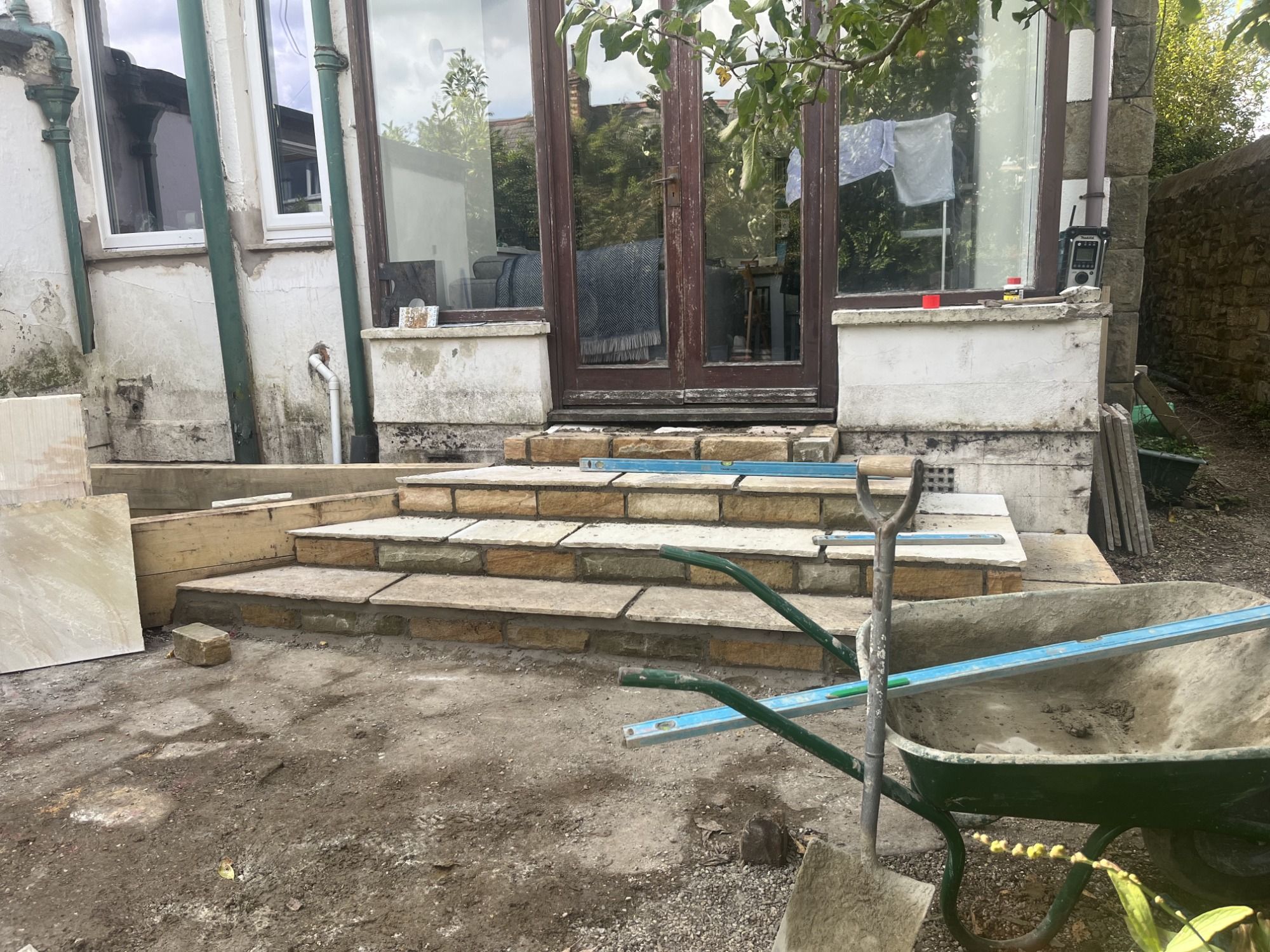 The left side of the old decking, they wanted as a small planter, but as works started, they changed that, to make it larger and more usable. The steps down from the double doors made an immense difference to their ability to access the garden, and make the most of it.