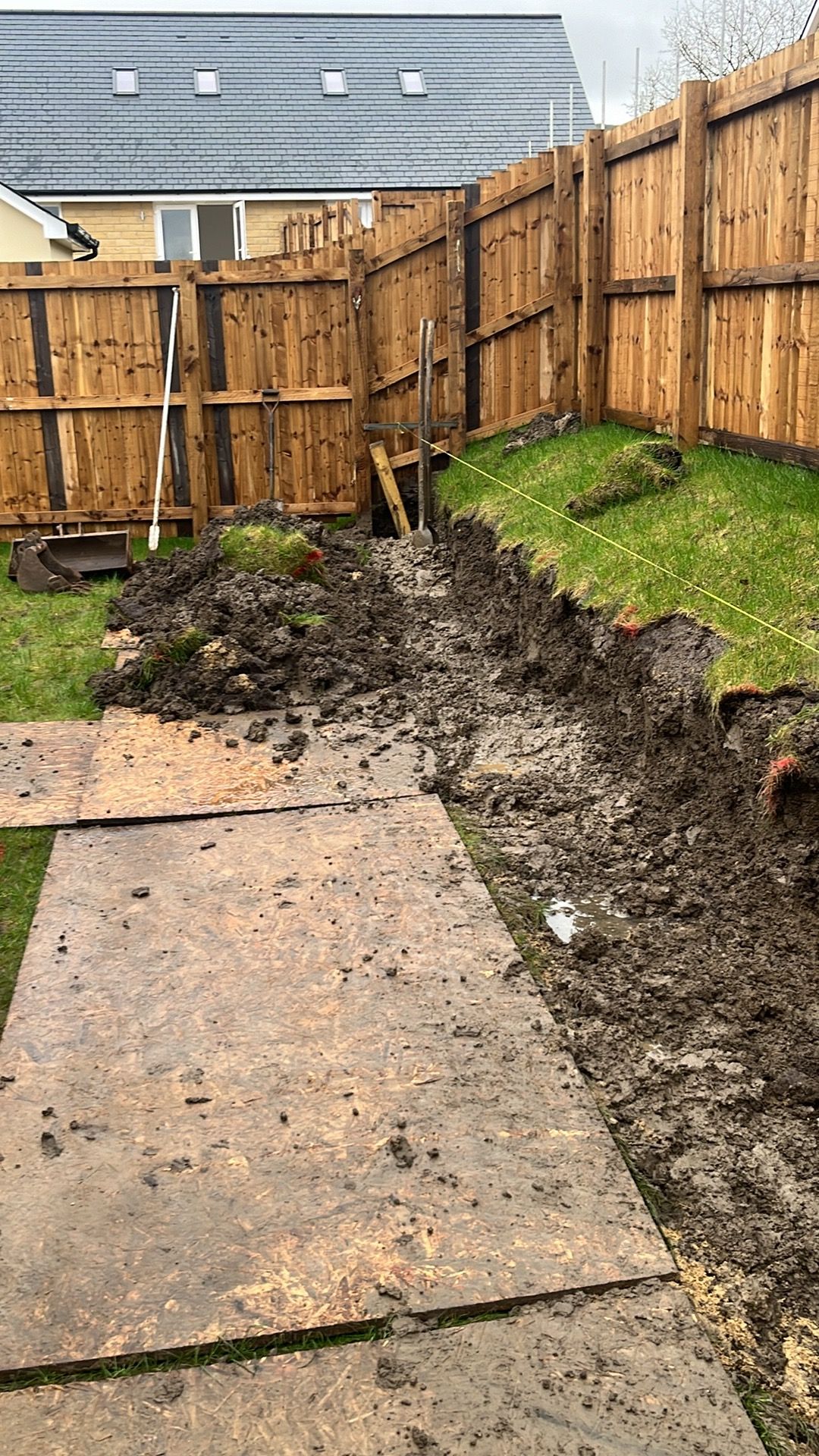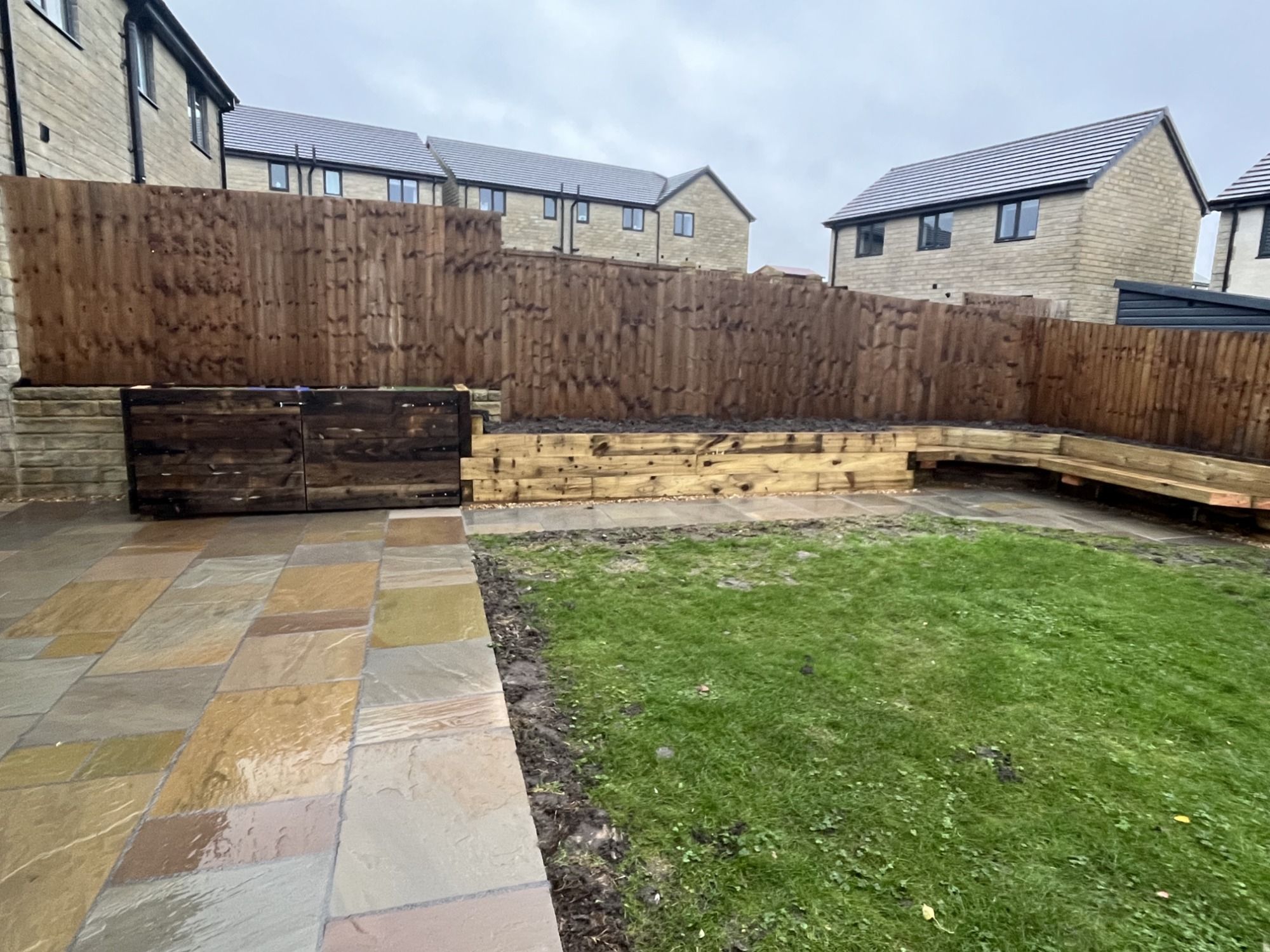 This was, again, and new build where the property's boundary was against another that was significantly higher than their own. whilst I was digging out, it became apparent that the retaining wall needed attention, as it was already slipping. This was rectified, and the sleepers, I feel, look great against the garden.