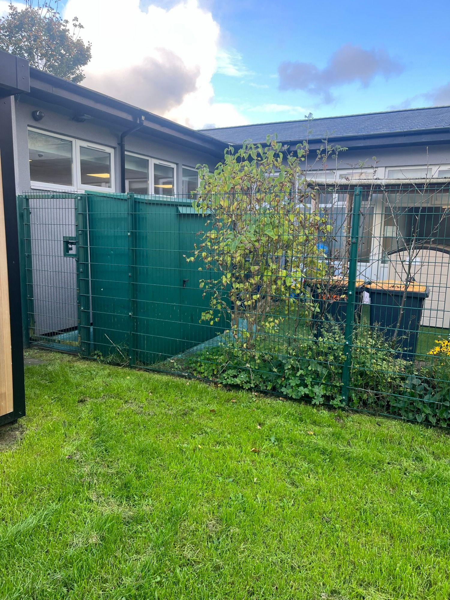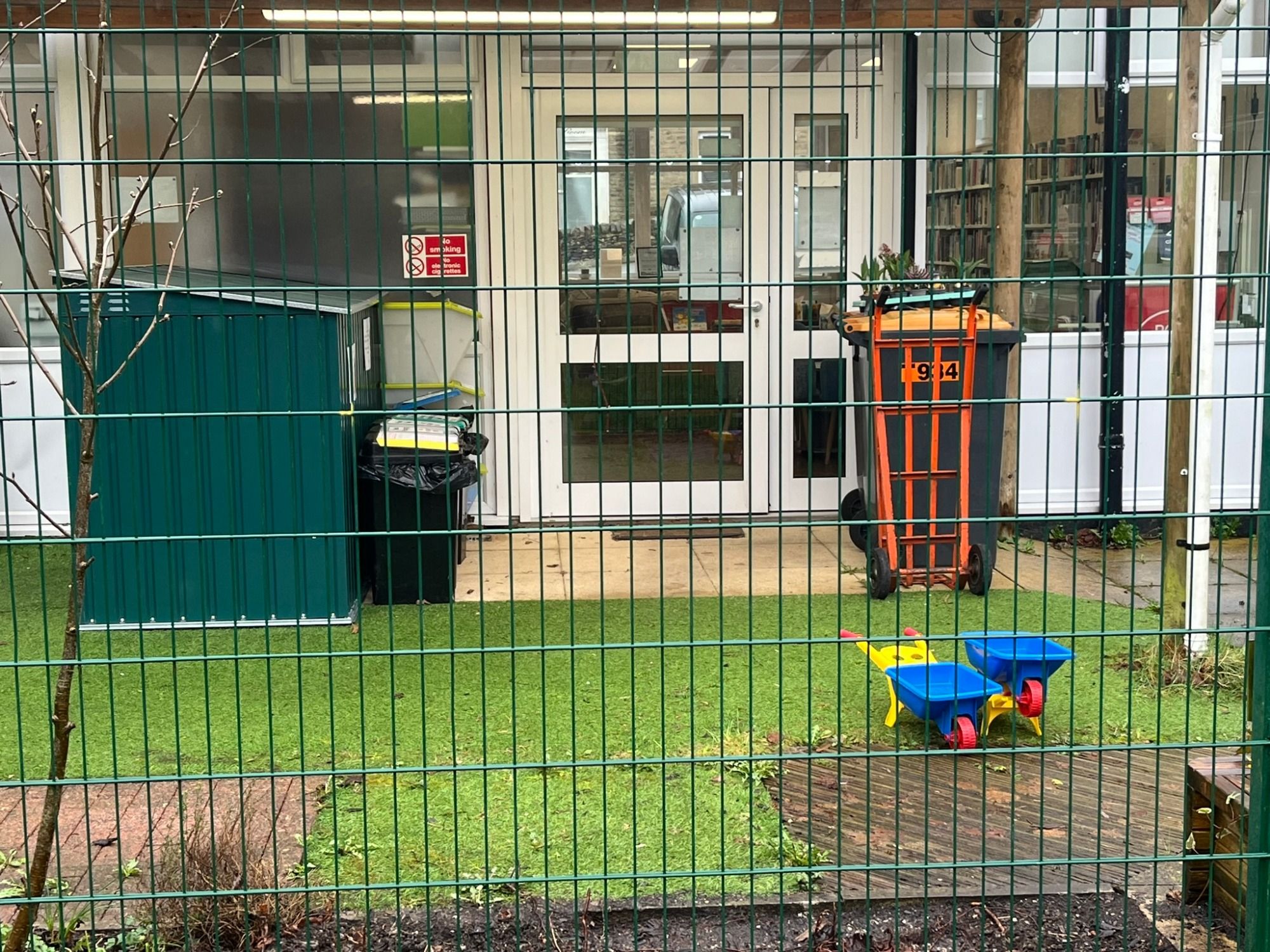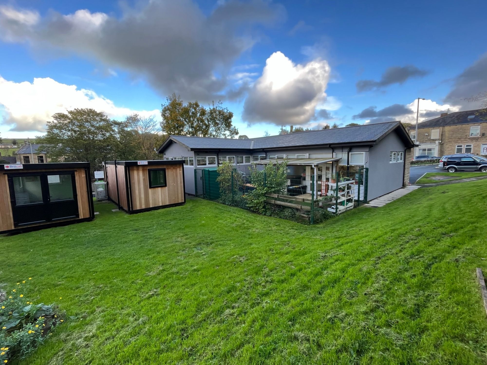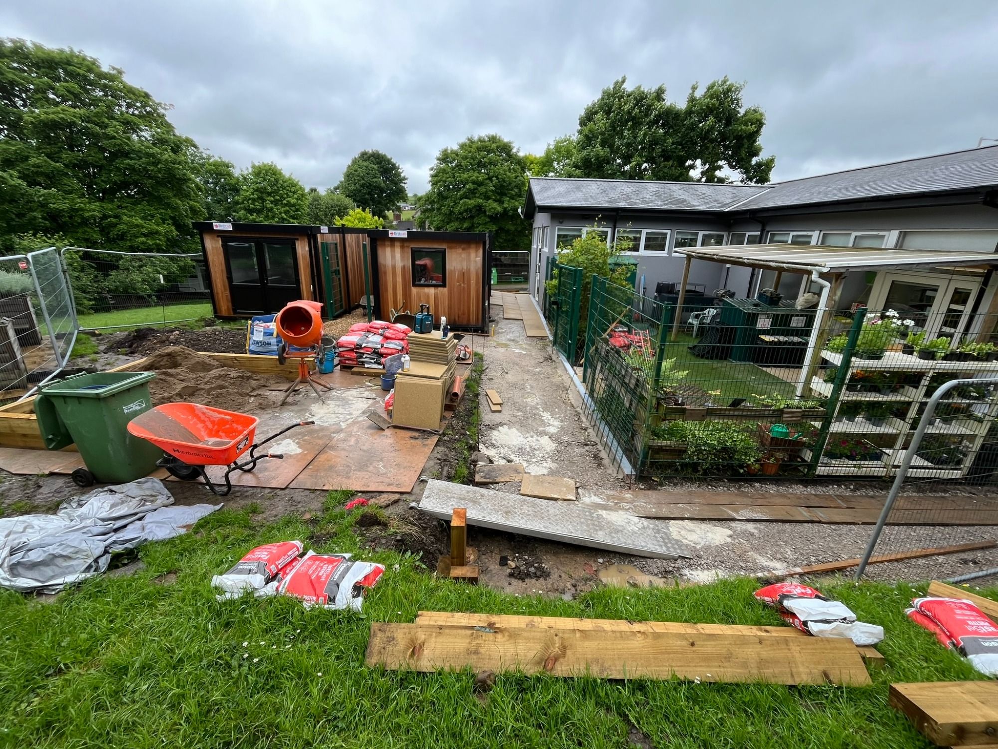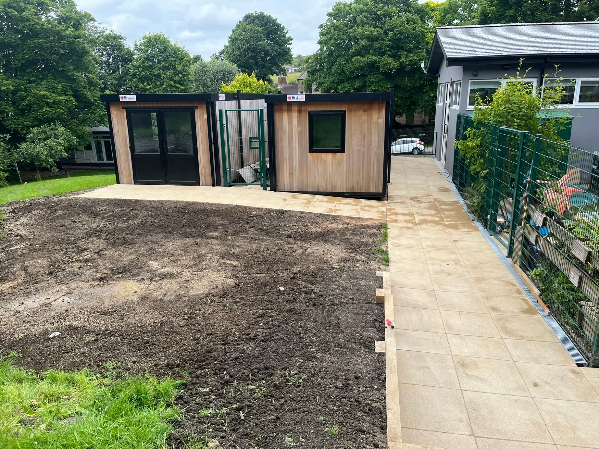 The Parish Council purchased a wooden-clad portacabin and the Trustees allowed them to locate it to the rear of the building, creating a central hub. The Trustees also purchased the same cabin and as there was no paths to these cabins, I was tasked with making both buildings accessible.