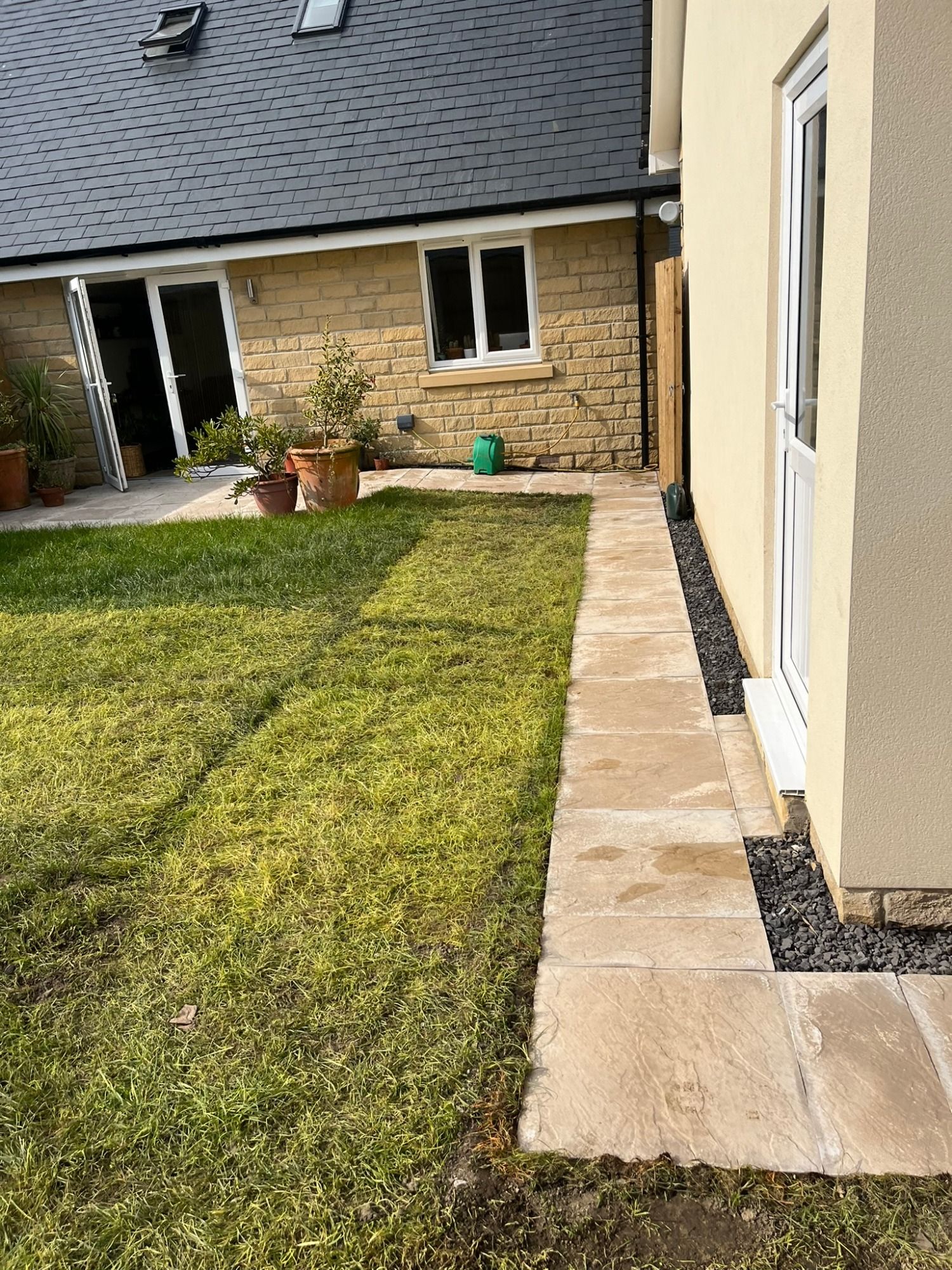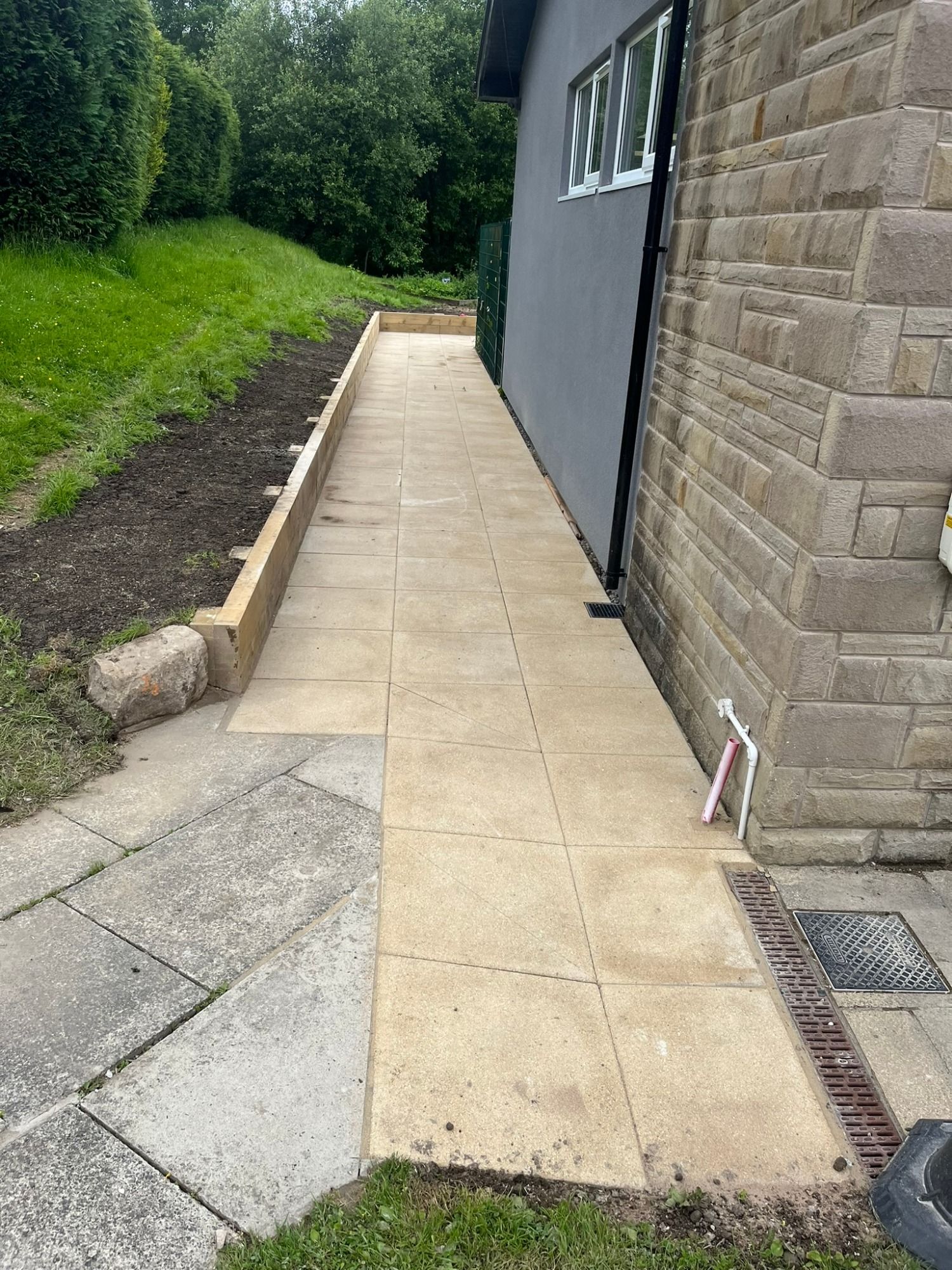 The property that this job was completed on has had a significant amount of work to extend it. It needed patio, paths, steps and drains installing.