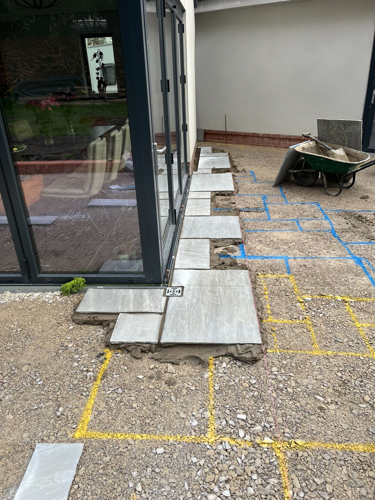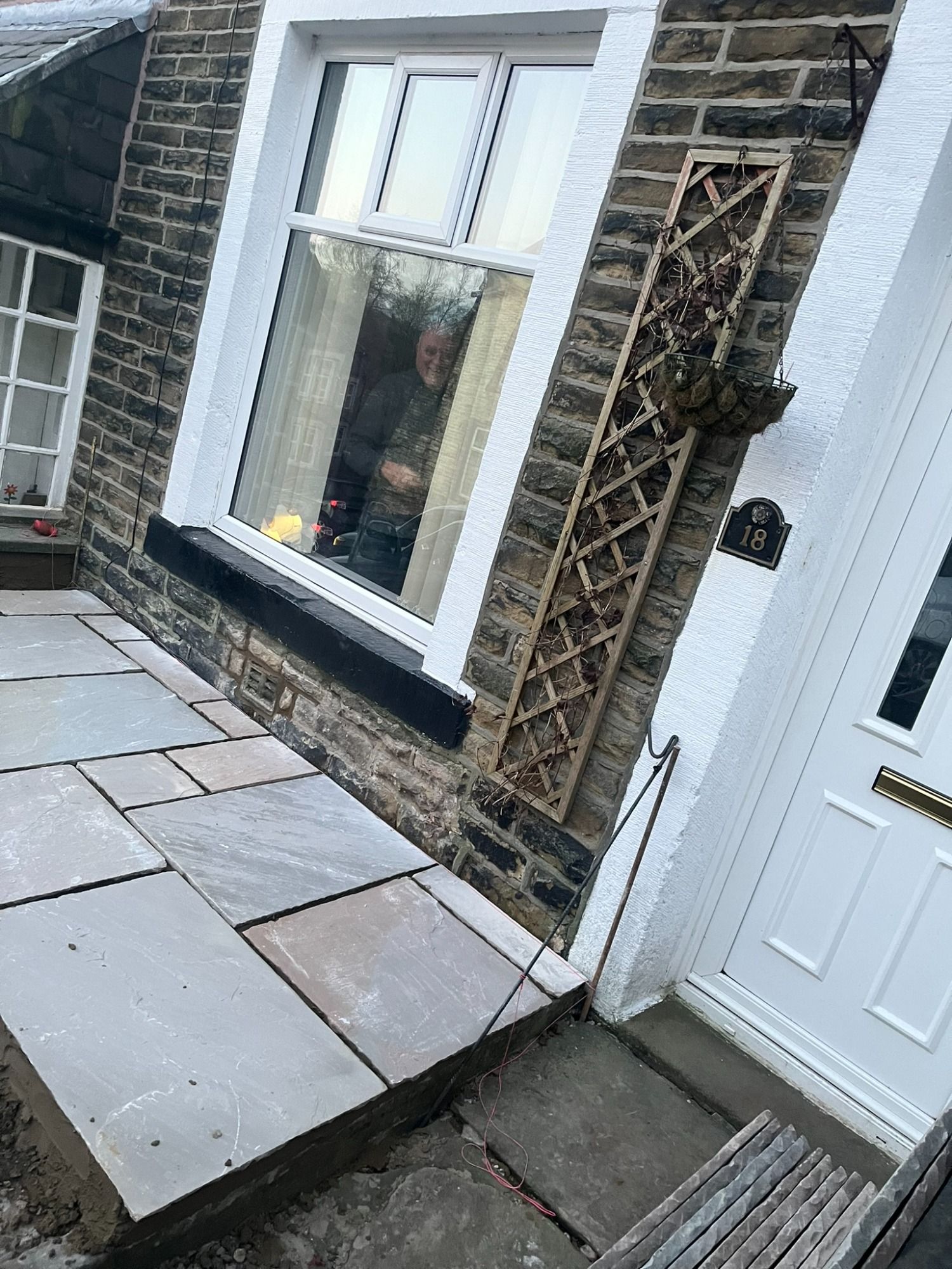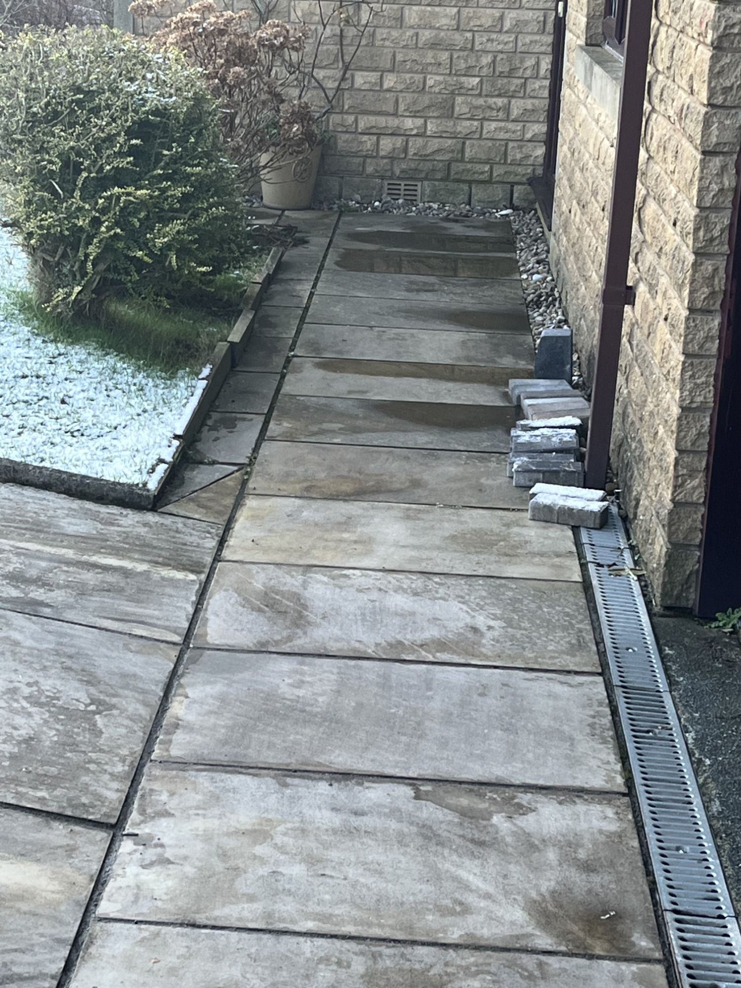 The flags needed relaying and they wanted the patio making bigger, with matching stone.