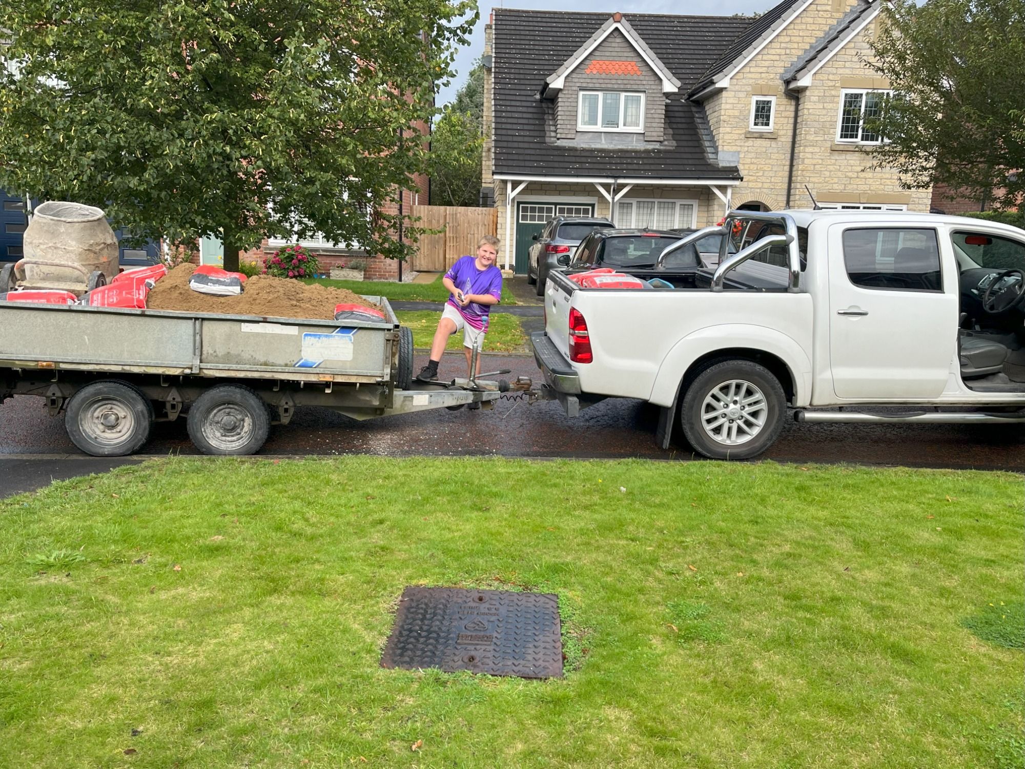This was just a small job where he customer already had the stone circle, but wanted the slate replacing withconcrete so that their young son could play out, on his bike.