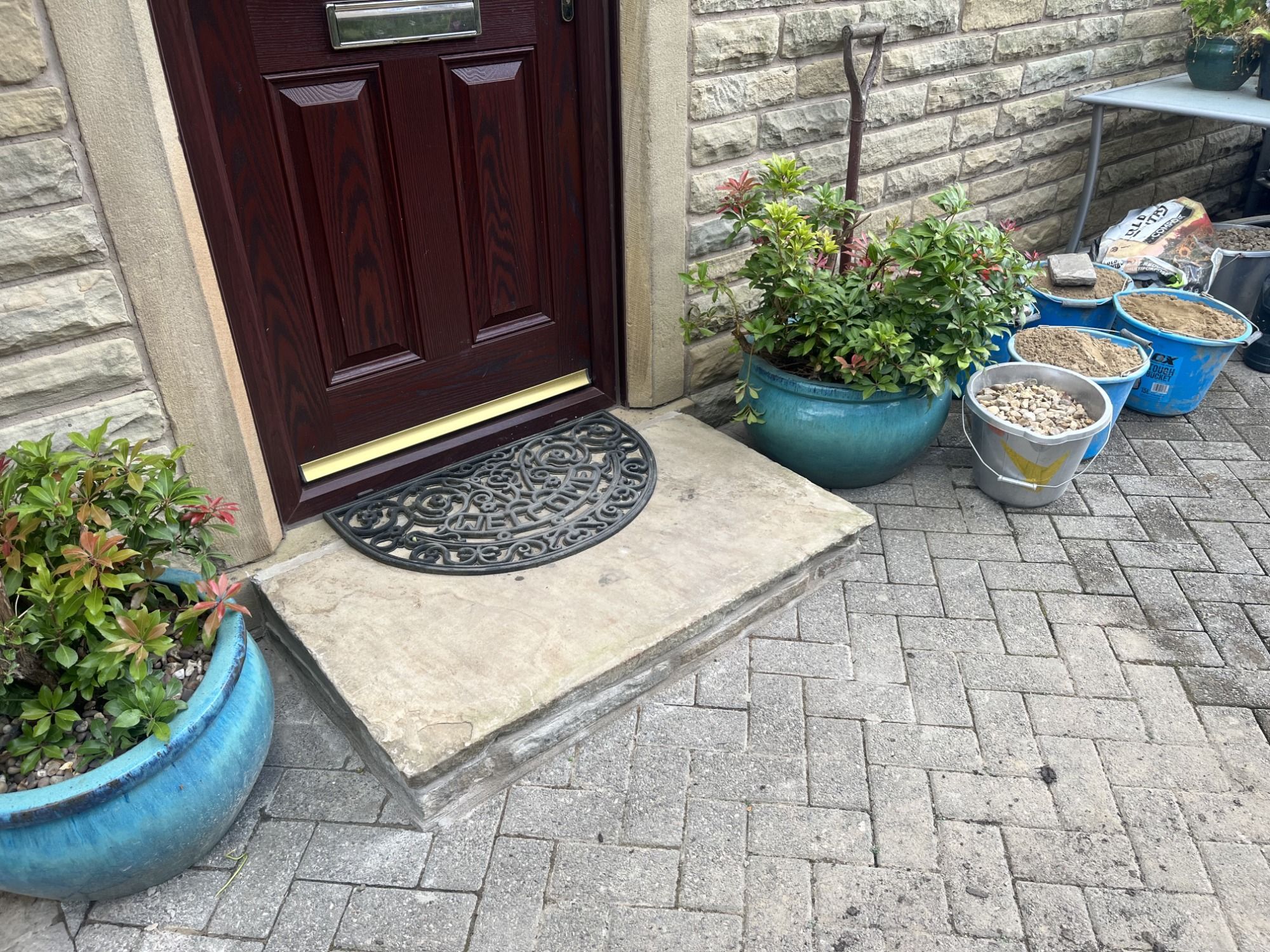 This is a small front garden area and path that needed a bit of TLC. They wanted the garden all one level so that they could use it for their lovely plant pots that they already had. The path needed to match, and they were so pleased with the result.