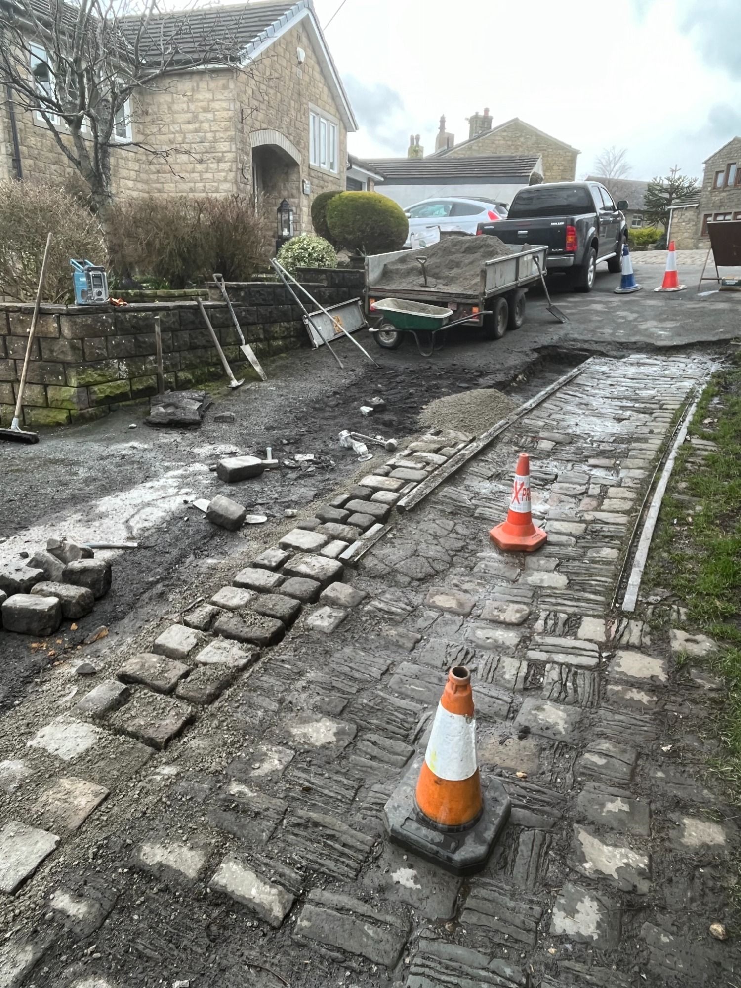 In the village where we live, there is a set of Historic Tram Tracks, that are all cobble setts.
